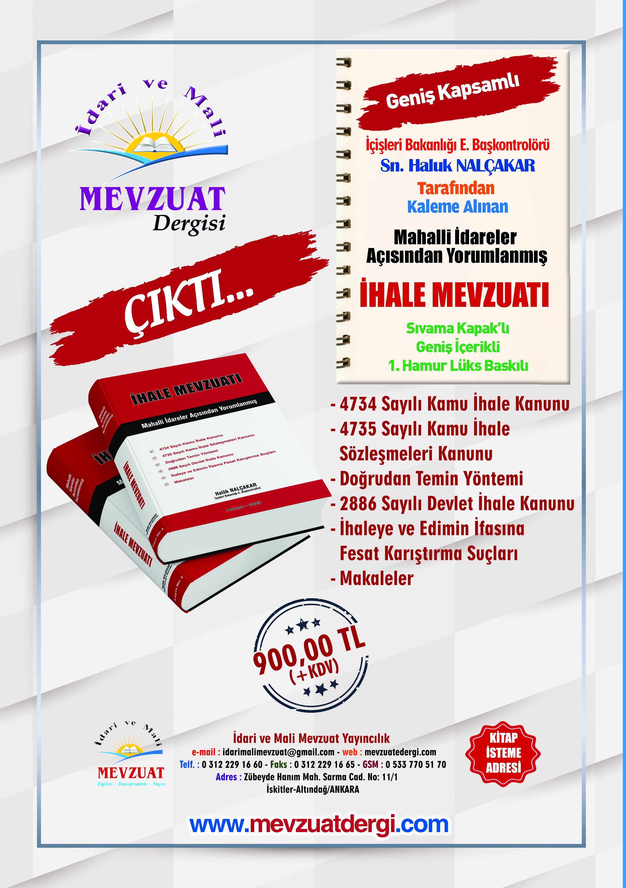İSTEME ADRESİ: İdari ve Mali Mevzuat Yayıncılık, İnş., Eğt. Dan., Org., Tur., San. Tic. Ltd. Şti.